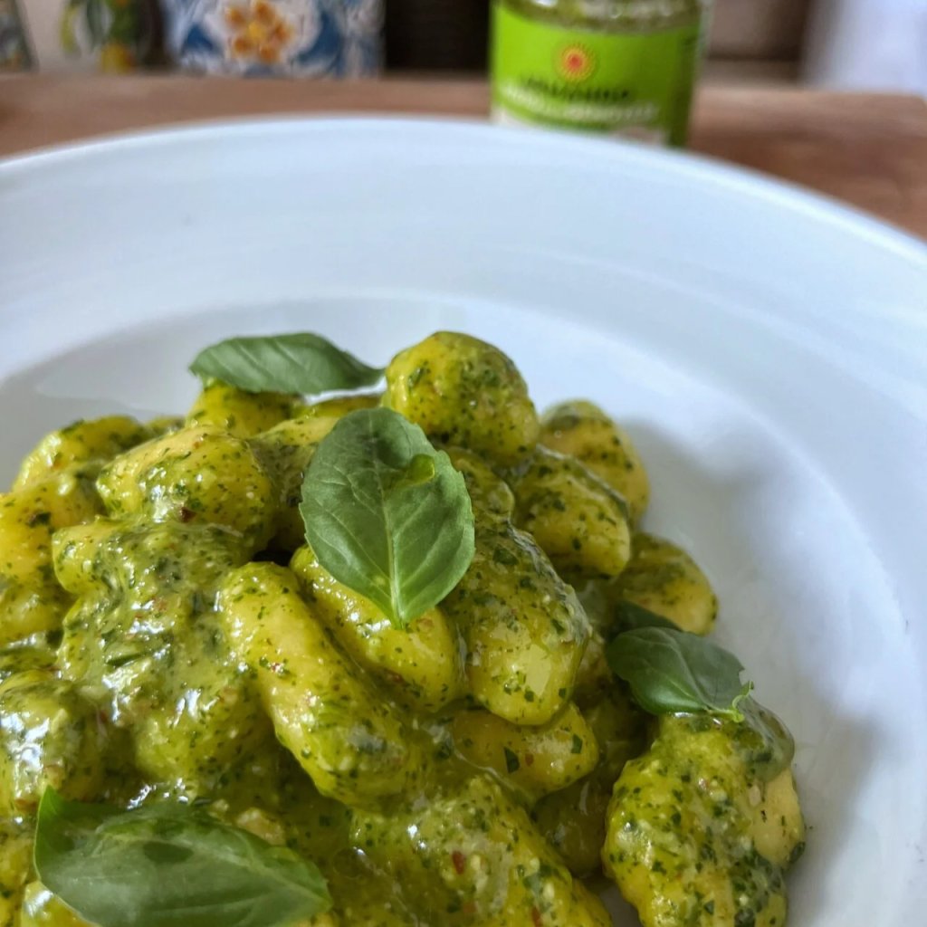 - Základem je bazalka Genovese D.O.P., která dodává pestu autentickou chuť a svěží vůni, jakou najdete jen v italské Ligurii.