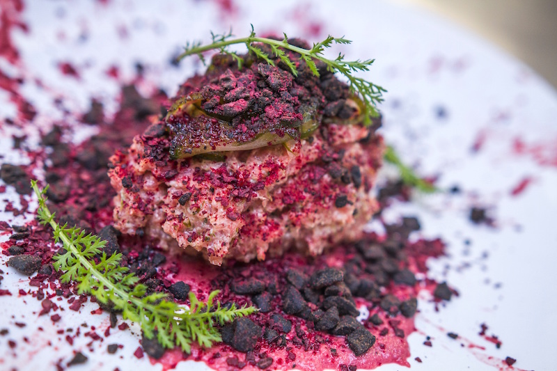Jan Matějka – HOVĚZÍ TATARÁK, červená řepa, okurky, koprová majonéza a olivy