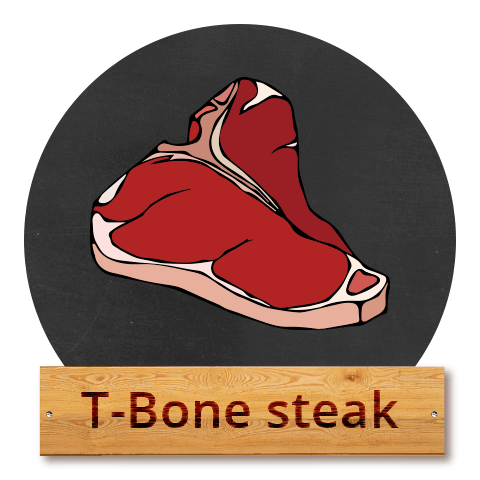 Jak již bylo řečeno, T‑Bone steak je podobný Porterhouse steaku, je ale krájený na menší plátky. Název dostal podle hřbetní kosti, která protíná steak v polovině a rozděluje jej na dvě části, pravou svíčkovou a nízký roštěnec. Část u kosti patří mezi ty nejlahodnější a většinou váží kolem půl kila.