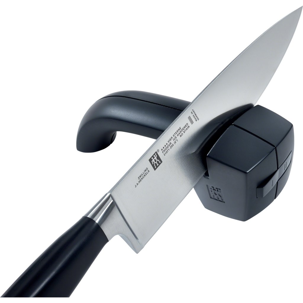Brousek na nožeZWILLING Sharp Pro je jednoduchý na použití, broušení s ním je snadné a bezpečné. Nesprávné použití brousku je téměř nemožné. Vyroben z kvalitního černého plastu s ocelovým a keramickým brusným kotoučkem, odolný proti poškození. Není vhodný pro asijské ani zoubkované nože!