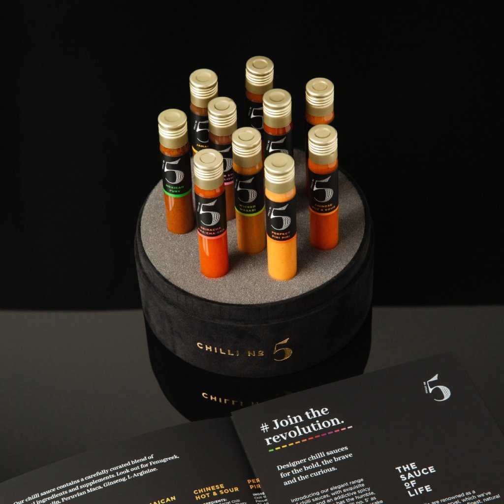 - Všechny omáčky v této sadě obsahují exkluzivní směs papriček Chilli No. 5, která přináší komplexní a výraznou pálivost bez kompromisů v chuti.