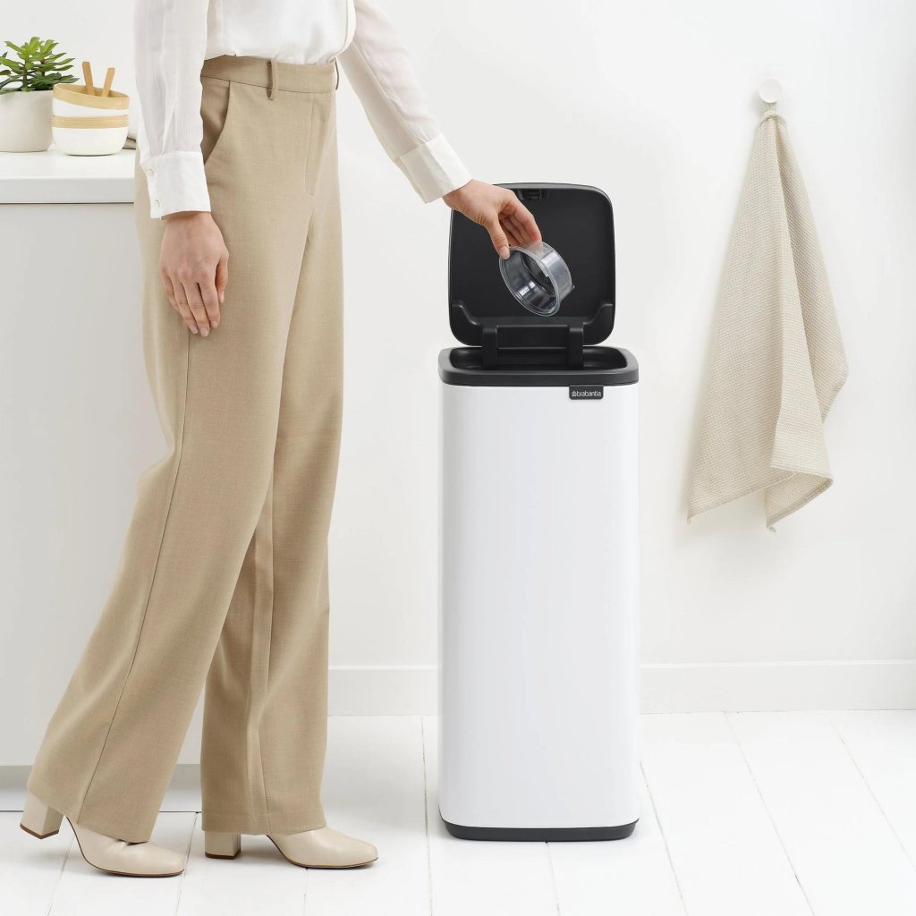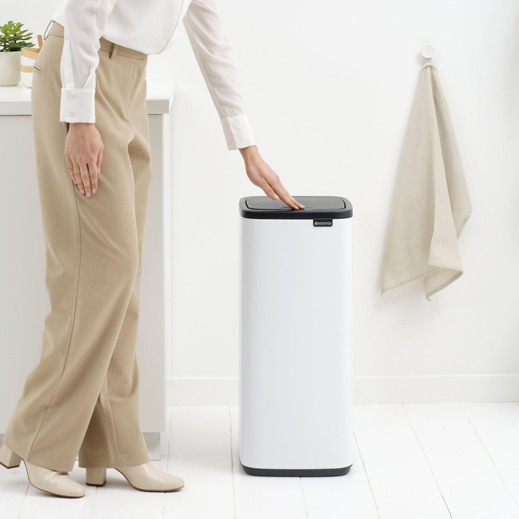 - Dotykový odpadkový koš Brabantia BO s objemem 30 litrů je vysoký, elegantní a přitom maximálně praktický pomocník pro každodenní odpad v domácnosti.