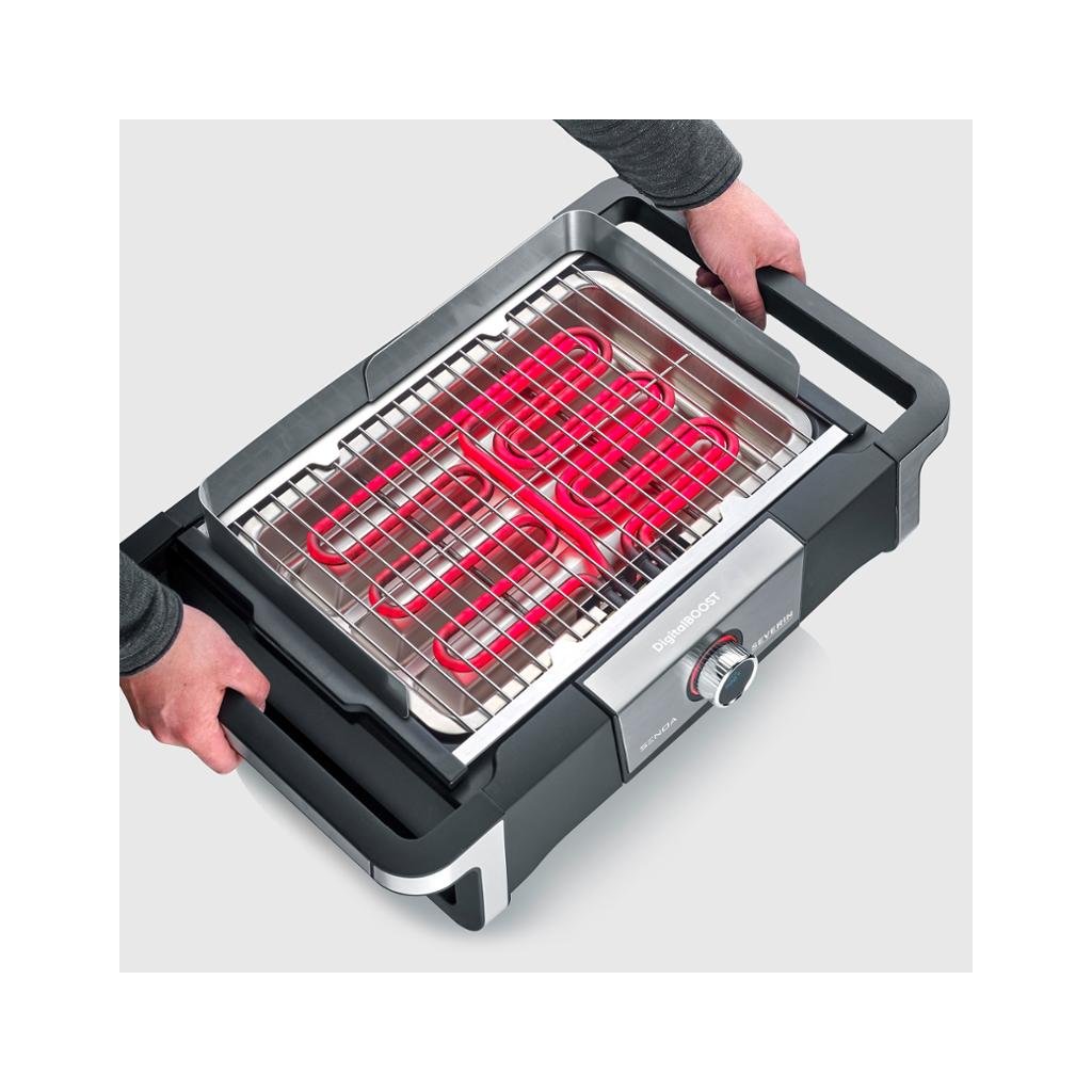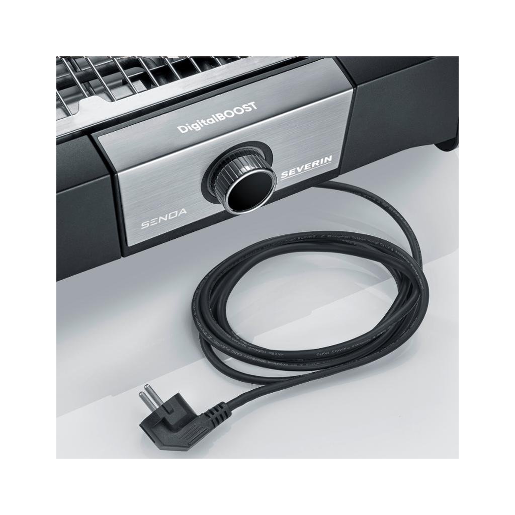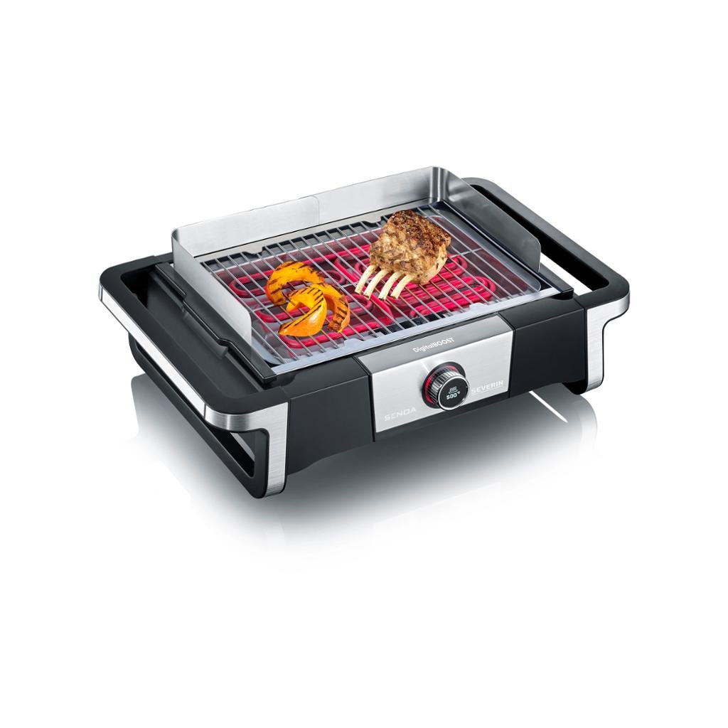 Nezáleží na počasí, které panuje venku za okny. Elektrický stolní gril Severin SENOA PG 8114 zvládne přípravu vašich nejoblíbenějších pokrmů, rychle a s minimální námahou. Vysoký výkon 3 000 W zajistí ty nejlepší výsledky. Grilovací rošt je vyroben z kvalitní nerezové oceli a má rozměry 41,5 × 24 cm, na celkové ploše 996 cm2 přichystáte jídlo pro celou rodinu. Gril je opatřen izolovaným povrchem SafeTouch, který eliminuje riziko popálení. Kolem grilu se nachází praktická zástěna, která brání větru a oceníte ji i v kuchyni, protože efektivně zamezuje stříkání po kuchyňské desce. Dlouhý napájecí kabel o délce 2 metry vám dopřeje potřebnou flexibilitu.