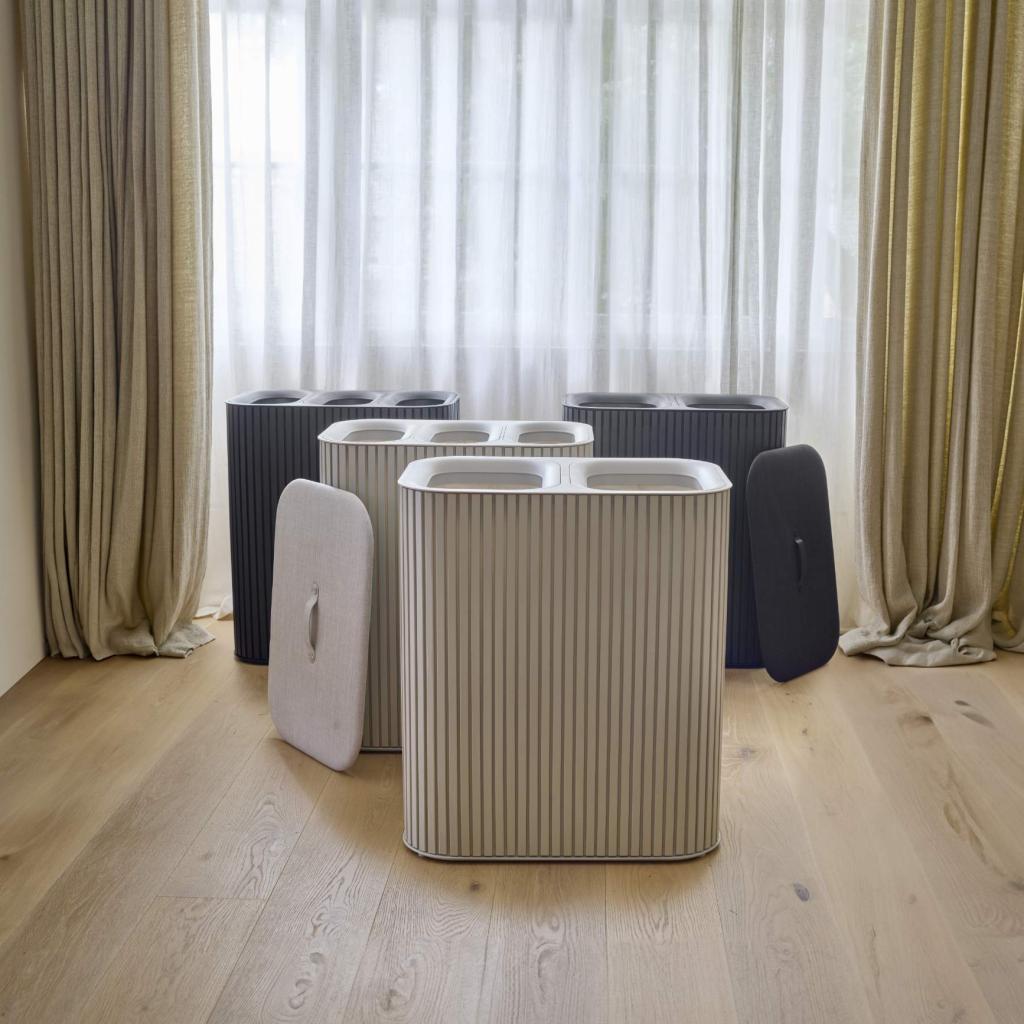 - Štíhlý a prostorově úsporný tvar umožňuje umístění koše i do menších místností bez narušení celkového vzhledu interiéru.