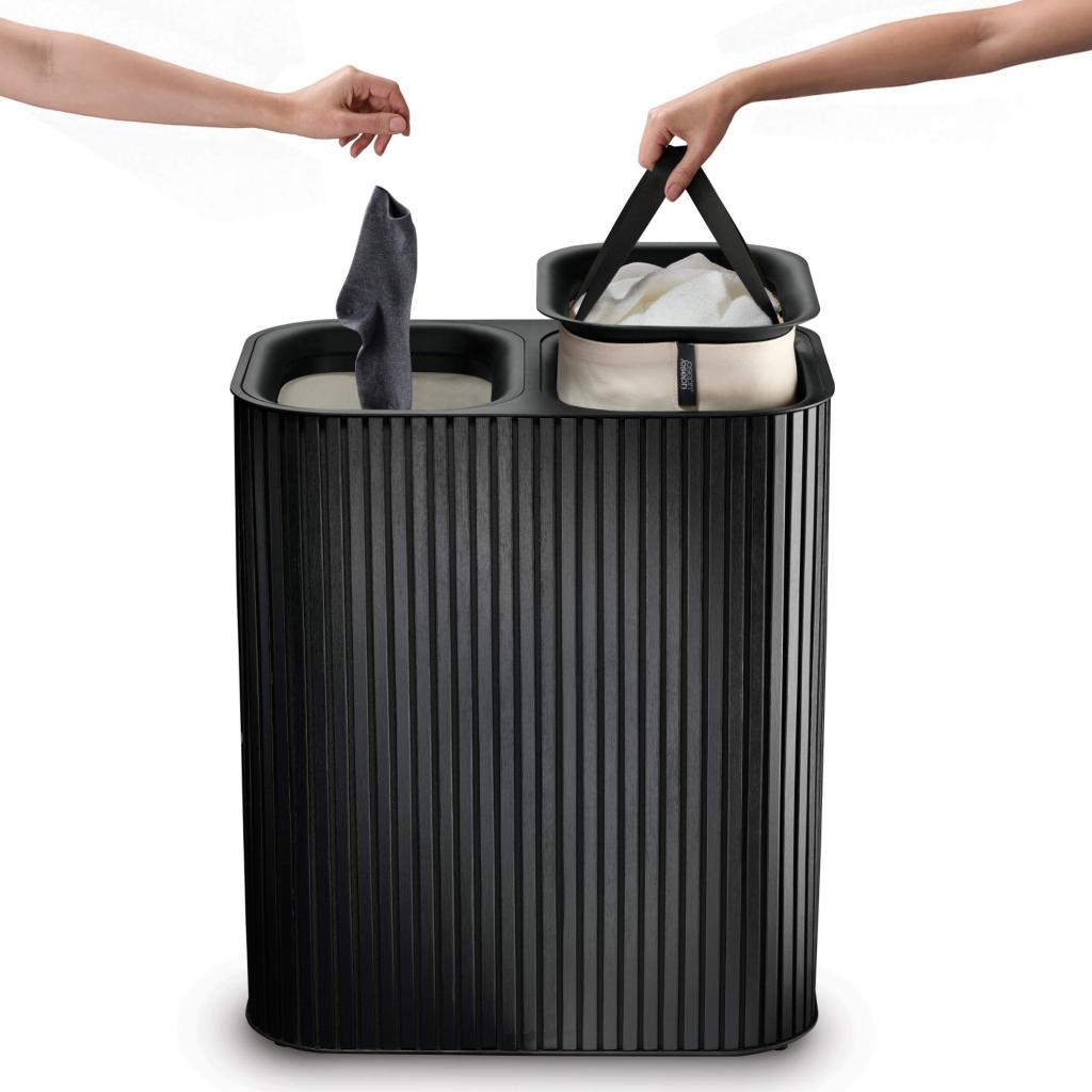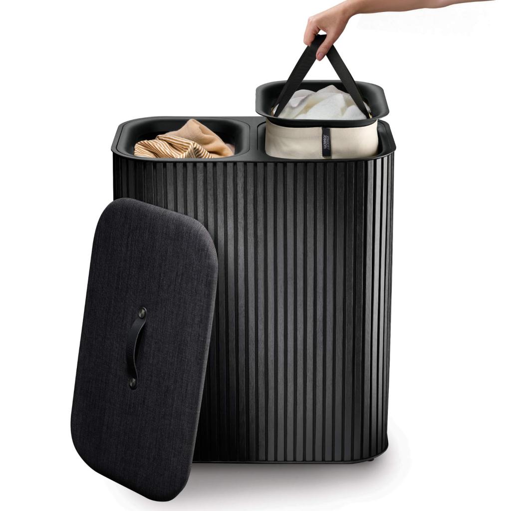 - Koš na prádlo Joseph Joseph TOTA LUXE v černém provedení představuje elegantní a praktické řešení pro třídění prádla v moderní domácnosti.