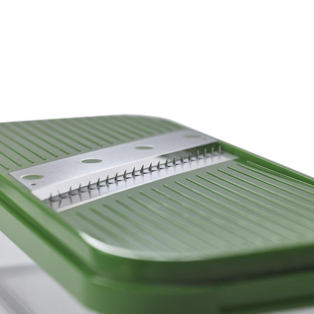 - Praktická nádoba ve spodní části zachytává připravené suroviny během krájení, takže pracovní plocha zůstává čistá.