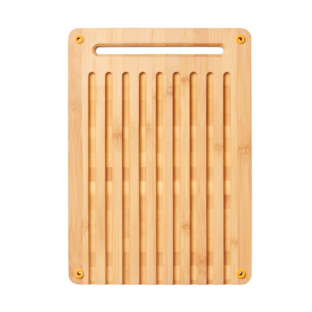 Oboustranné krájecí prkénko s jednou stranou hladkou a druhou opatřenou drážkami. Tato strana s drážkami je ideální pro krájení chleba. Prkénko je vyrobeno z bambusu a jeho povrch je ošetřen lněným olejem. Prkénko je opatřeno silikonovými protiskluzovými nožkami.