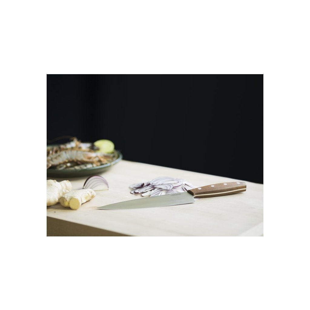 Všestranný nůž s masivní čepelí, navržený pro pohodlné krájení masa a zeleniny. V jeho designu se snoubí tradiční severská kultura a kvalita z udržitelných zdrojů.