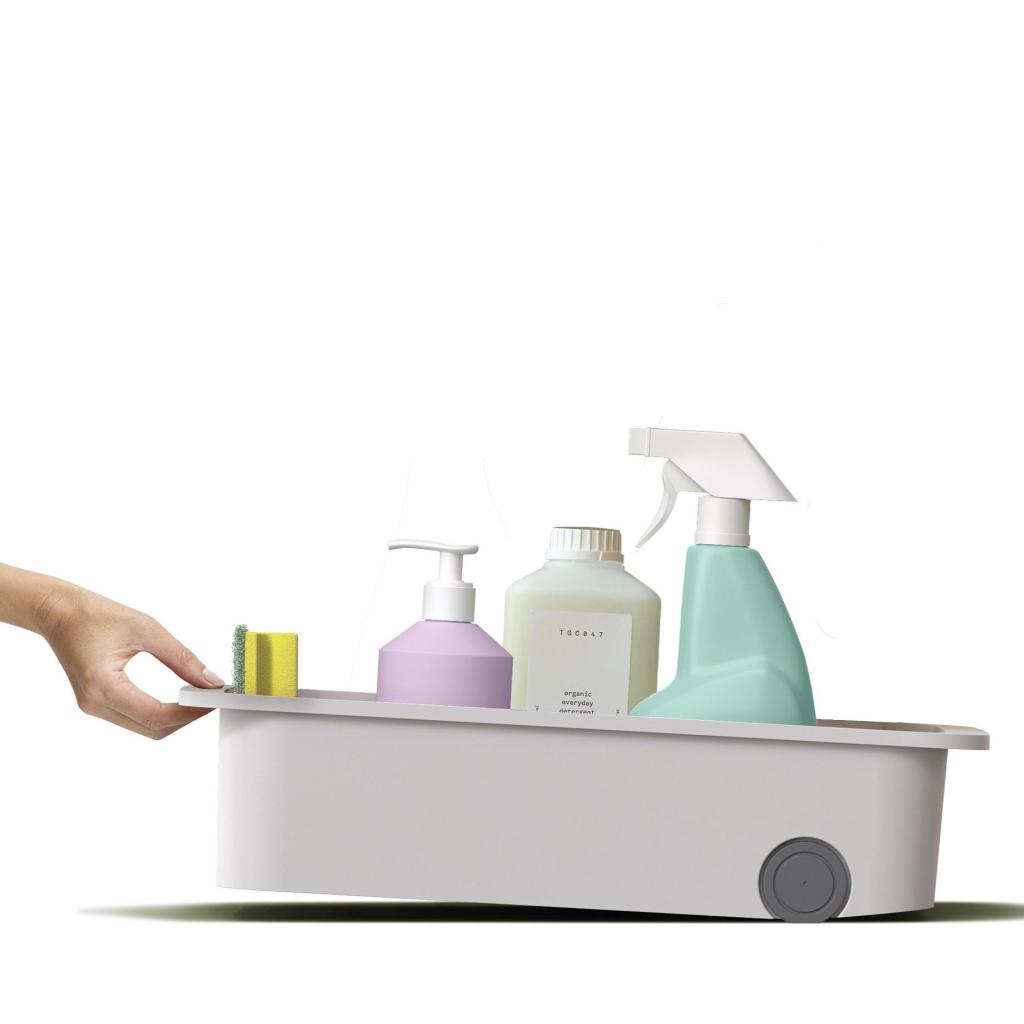 - Praktické rozdělení prostoru pomáhá oddělit jednotlivé čisticí prostředky a udržet skříňku pod dřezem přehledně uspořádanou.