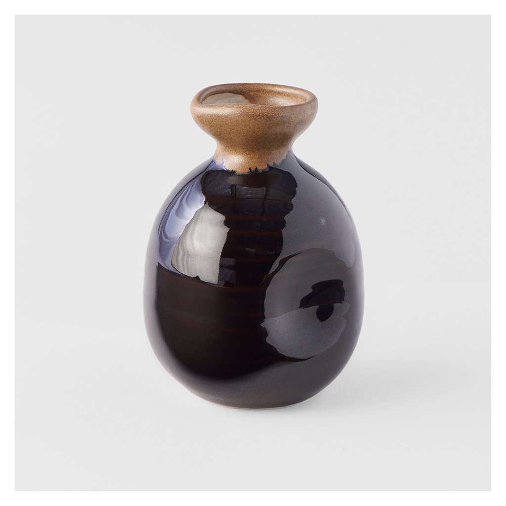 Láhev na saké 350 ml, hnědá / černá, keramika, MIJ