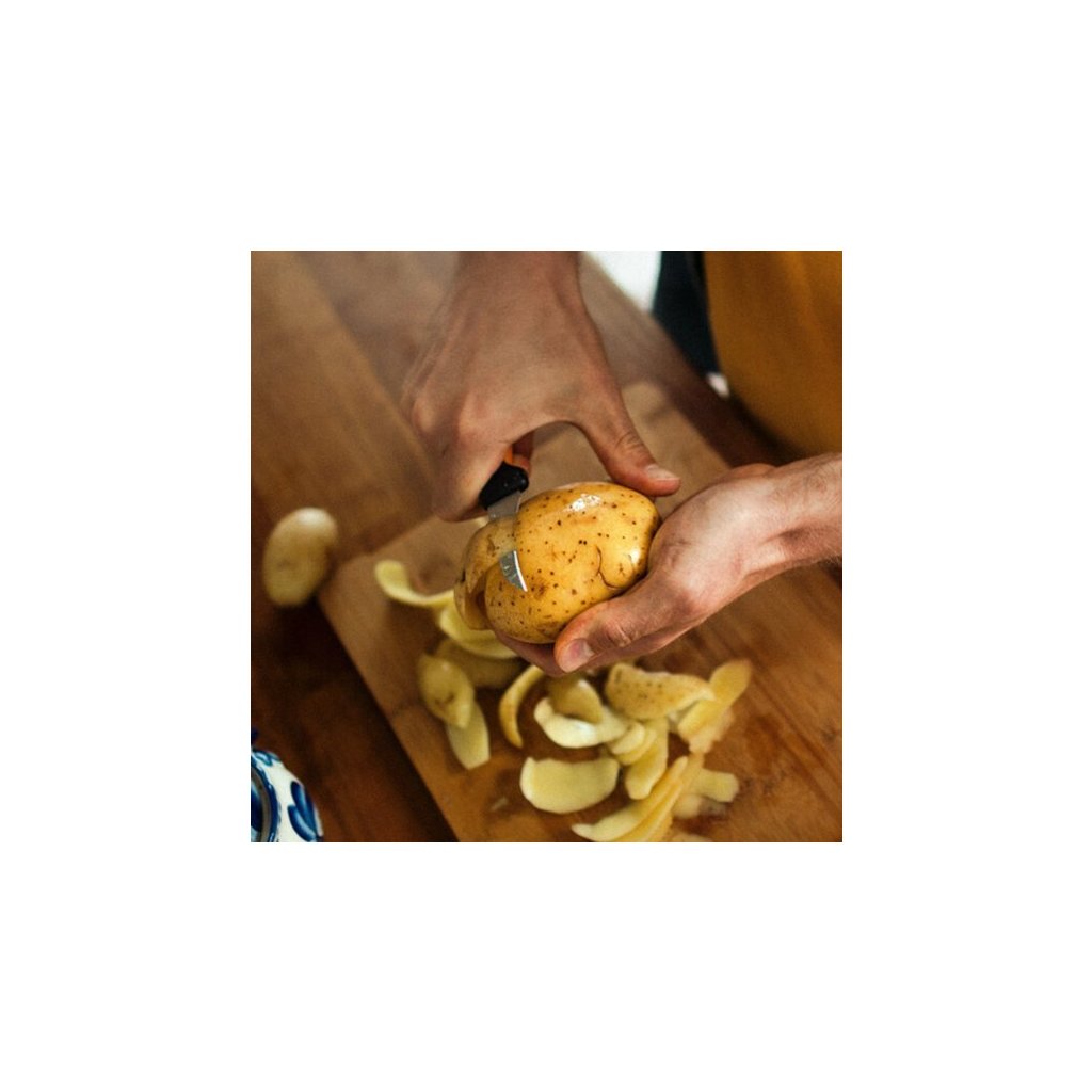Pro kuchaře, kteří oceňují elegantně navržené kuchyňské nářadí se snadnou údržbou. Loupací nůž se zahnutou čepelí Fiskars Functional Form™ je pevný nůž, nezbytný pro každodenní používání. Jeho zahnutá a pevná čepel s ostrou špičkou z japonské nerezové oceli je ideální pro oloupávání kulaté kořenové zeleniny.