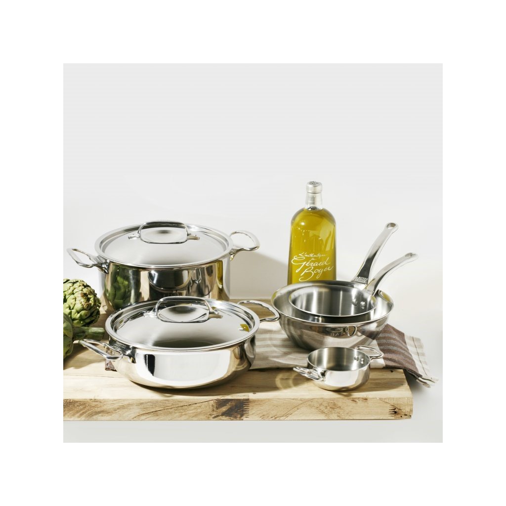 Vysoce kvalitní nerezové nepřilnavé pánve série Affinity jsou vyrobeny z pětivrstvého materiálu s povrchem leštěným do vysokého lesku. Výroba z jednoho kusu materiálu, krásně zaoblené tvary spolu s nýtovanou rukojetí jsou známkou kvalitního řemeslného zpracování, jež je pro vyhlášenou francouzskou značku de Buyer typické. Důmyslný tvar Lyonnaise - rozšířený a vypouklý tvar okrajů pánví - umožňuje snadné obracení připravovaného pokrmu v pánvi a při servírování jeho sklouznutí na talíř.