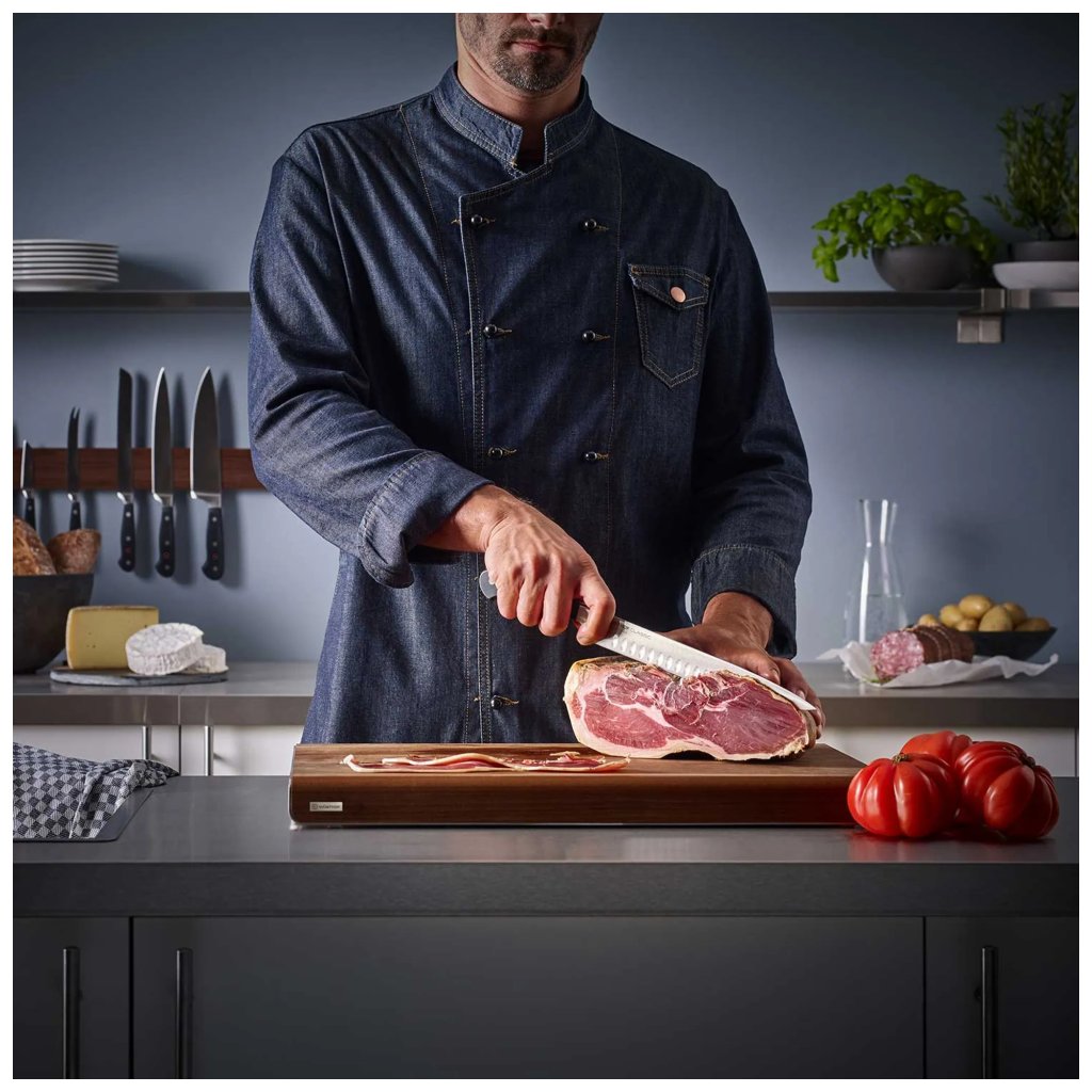 Stabilní ostří a dokonalá geometrie nože přináší výjimečnou řezivost a přesné ovládání v řezu. Ostrý úhel poskytuje ještě vyšší ostrost, která dělá krájení příjemnější. Díky klínovému výbrusu proniká nůž bez úsilí potravinami.