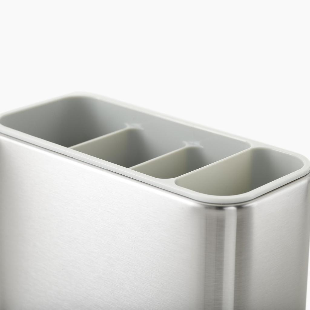 - Hlavní prostor je rozdělen do několika přihrádek, které pomáhají oddělit jednotlivé druhy příborů a usnadňují jejich organizaci během odkapávání.