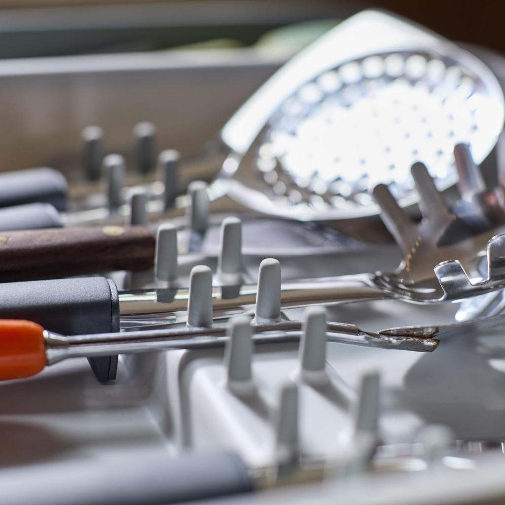 - Promyšlené rozdělení prostoru pomáhá udržovat zásuvku přehlednou a usnadňuje rychlé nalezení potřebného náčiní.