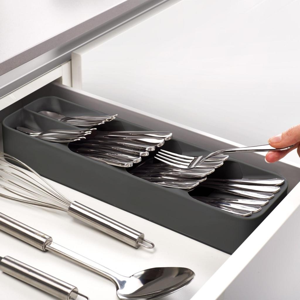 - Organizér na příbory do zásuvky Joseph Joseph DUO je kompaktní řešení pro přehledné a úsporné uspořádání lžic, vidliček i nožů v každé moderní kuchyni.
