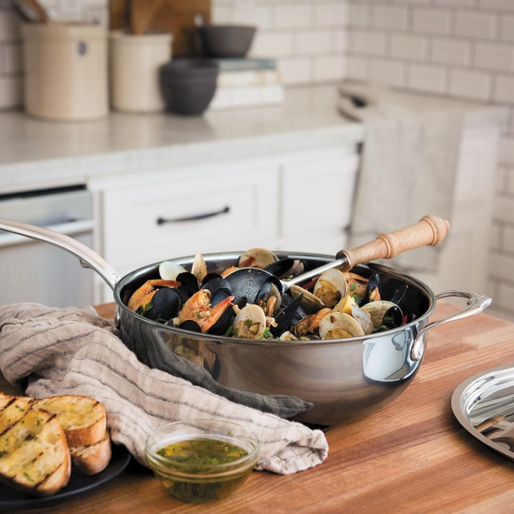 - luxusní multifunkční pánev se zaobleným dnem z nerezové oceli 18/10 s molekulárním titanem - její povrch je 4x tvrdší než běžná nerezová ocel