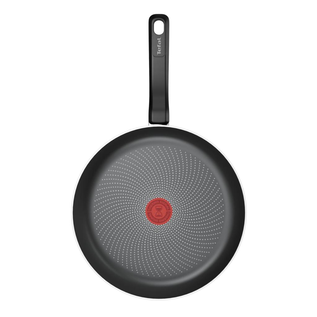 - Integrovaný indikátor Thermo-Signal™ změní barvu a zcela zčervená ve chvíli, kdy pánev dosáhne ideální teploty pro zahájení přípravy pokrmu.