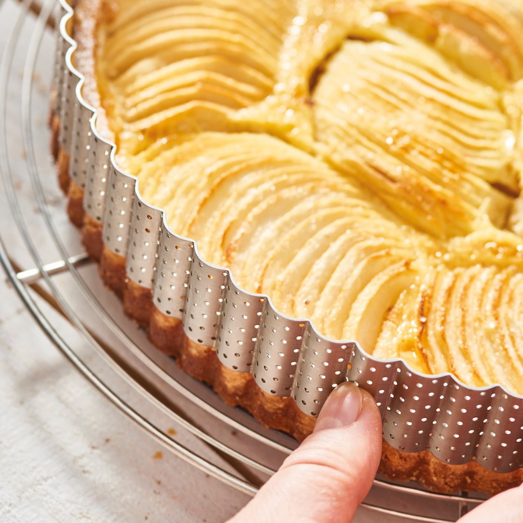 - nerezový vroubkovaný perforovaný ráfek de Buyer s výškou 3 cm je určený pro přípravu elegantních koláčů, tartů i dortových korpusů
