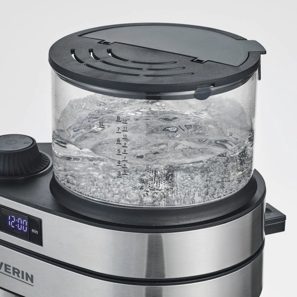 - vysoká kvalita a design z nerezové oceli s průhlednou skleněnou nádržkou na vodu