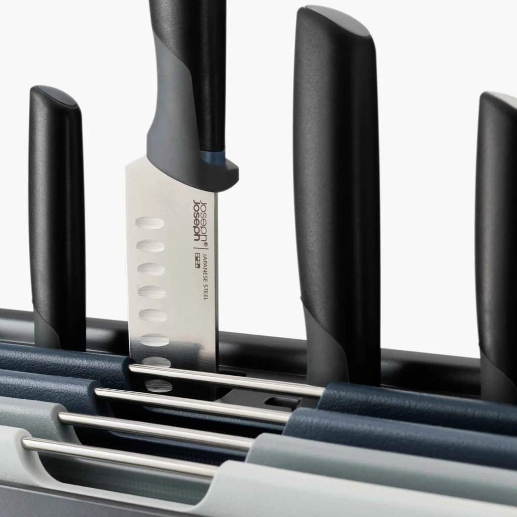 - integrované opěrky zajistí, že se čepele nožů po odložení nedotknou pracovní plochy