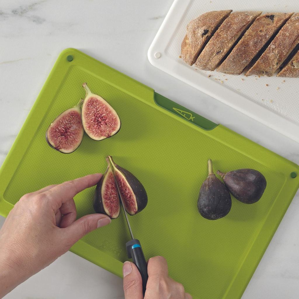 - Sada Joseph Joseph FOLIO ICON PLUS kombinuje 4 krájecí prkénka a 4 kuchyňské nože v kompaktním stojanu, takže máte vše potřebné pro přípravu jídla přehledně uložené na jednom místě.