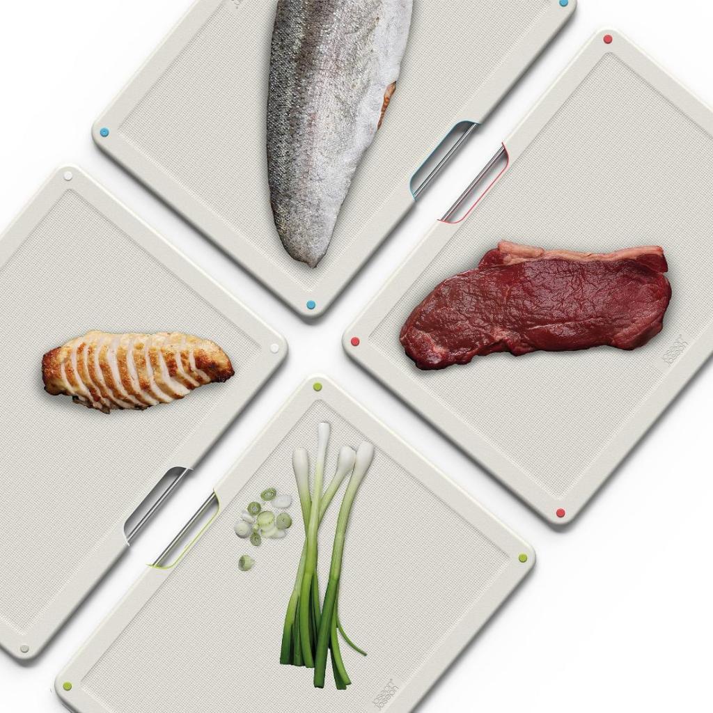 - Každé prkénko je barevně označeno, takže při vaření snadno vyberete správné prkénko pro konkrétní typ surovin a lépe organizujete přípravu pokrmů.