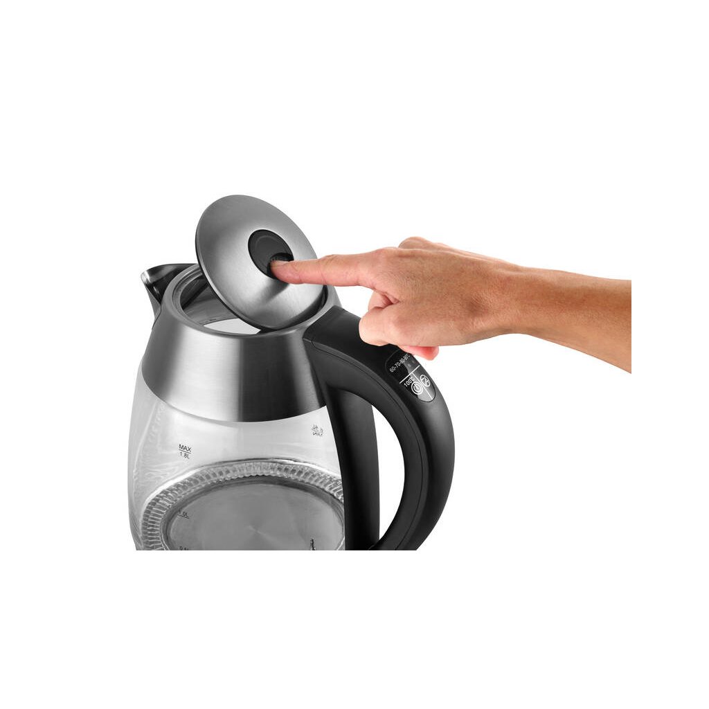 Konvice se snadno čistí, sítko lze pohodlně vyndat. Disponuje trojnásobným bezpečnostním systémem, funkčně tvarovaným ústím konvice a tlačítkem pro otevírání jednou rukou.