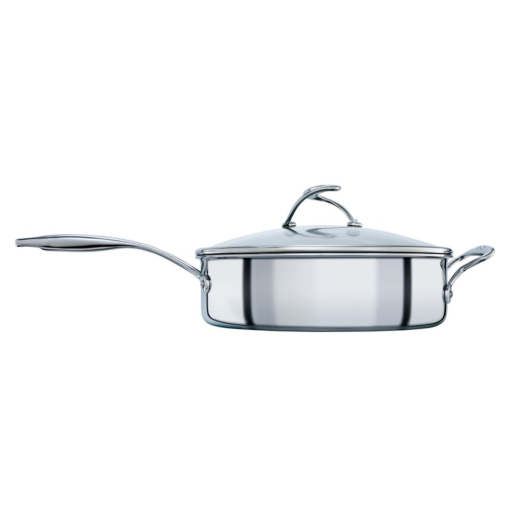 - třívrstvá konstrukce s hliníkovým jádrem zajišťuje rychlé a rovnoměrné rozložení tepla po celé ploše nádobí, což umožňuje přesnou kontrolu teploty při přípravě pokrmů