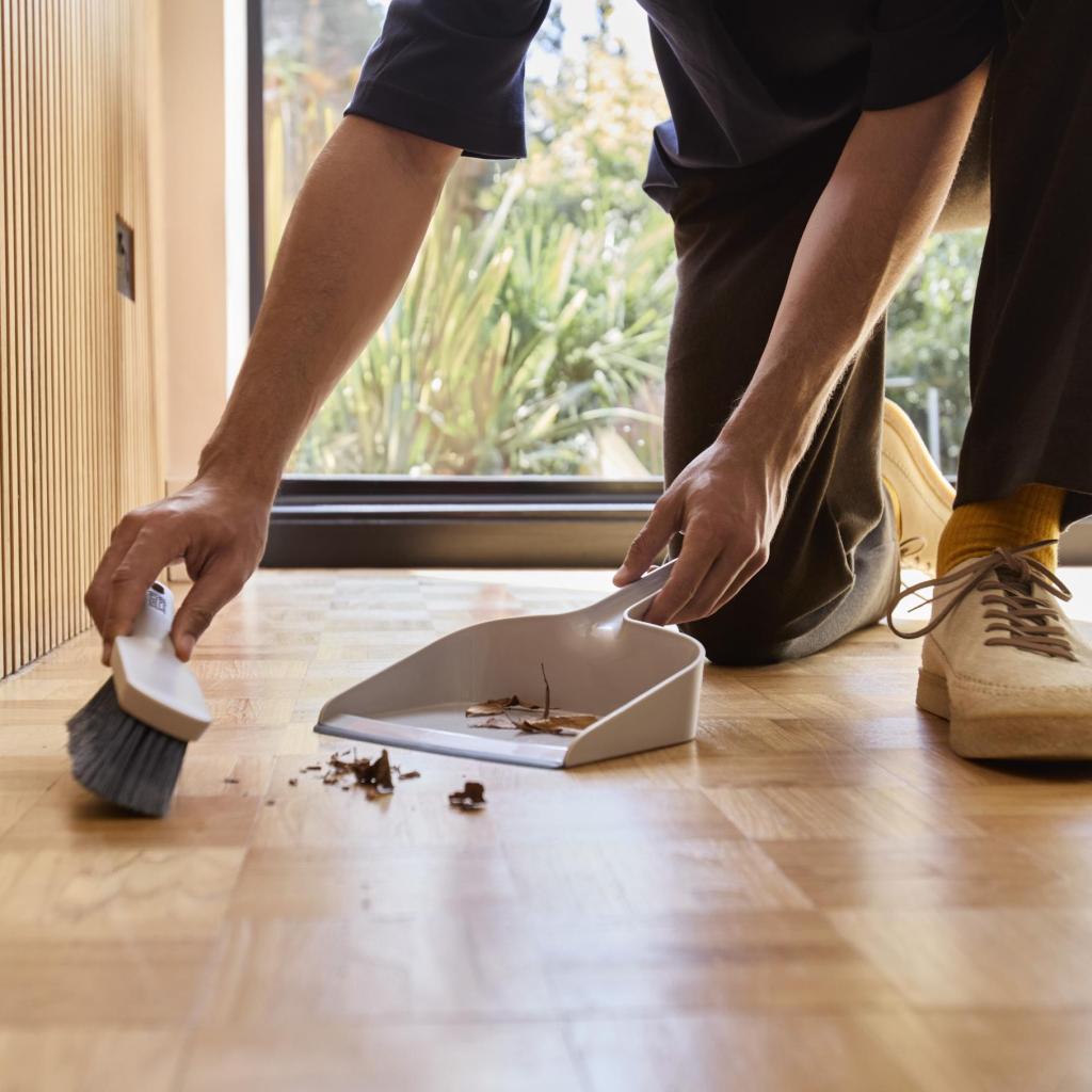 - Smetáček a lopatka Joseph Joseph CLEANTECH představují praktickou sadu pro rychlý úklid drobných nečistot v domácnosti s důrazem na hygienické a přehledné skladování.