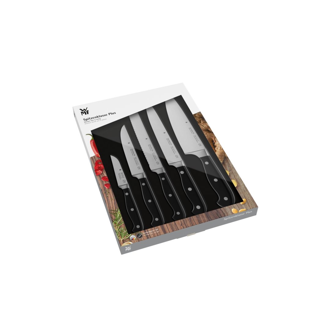 Série nožů Spitzenklasse Plus německé společnosti WMF navazuje na tradiční sérii nožů Spitzenklasse, jenž je klasikou mezi kuchyňskými noži. Nýtované rukojeti ze speciálního, vysoce kvalitního plastu mají na rozdíl od předchozí řady zaoblené hrany a jsou velmi příjemné na uchopení. Samozřejmostí u takto kvalitních nožů je také dokonalé slícování jednotlivých částí, které brání zachycování usazenin a bakterií.