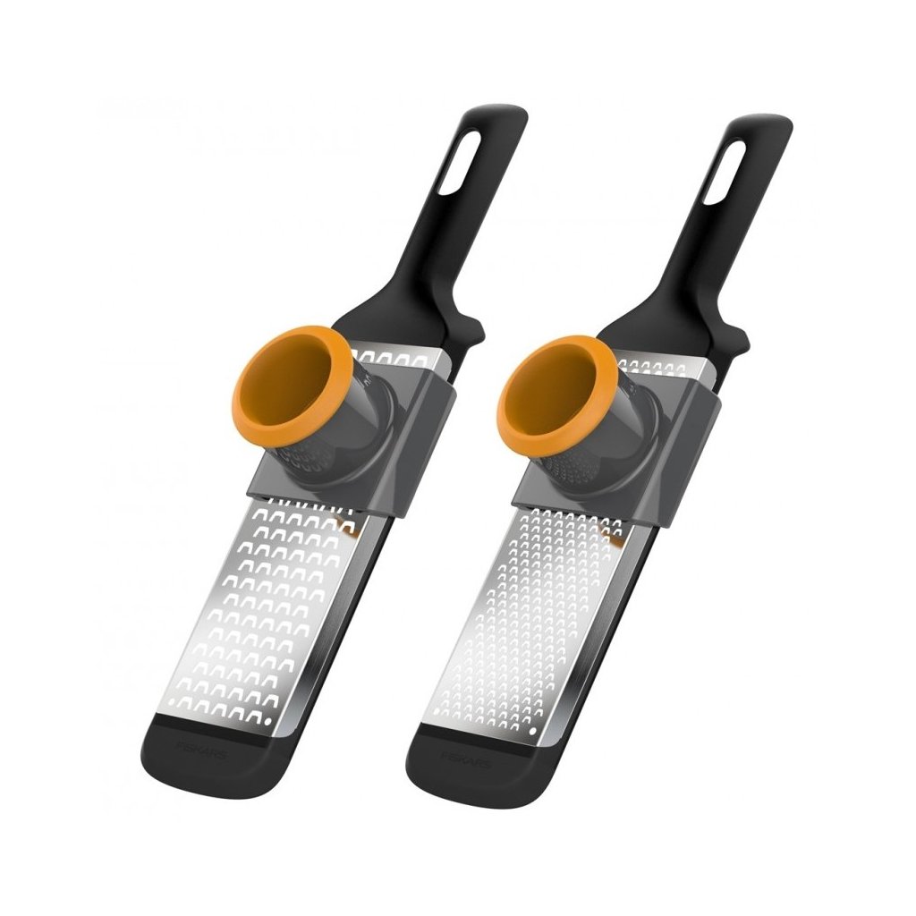 Sada Fiskars obsahuje jedno hrubé struhadlo a jedno jemné struhadlo. Mají skvělou ochranu, která zajišťuje bezpečí Vašich prstů. Lze mýt v myčce.