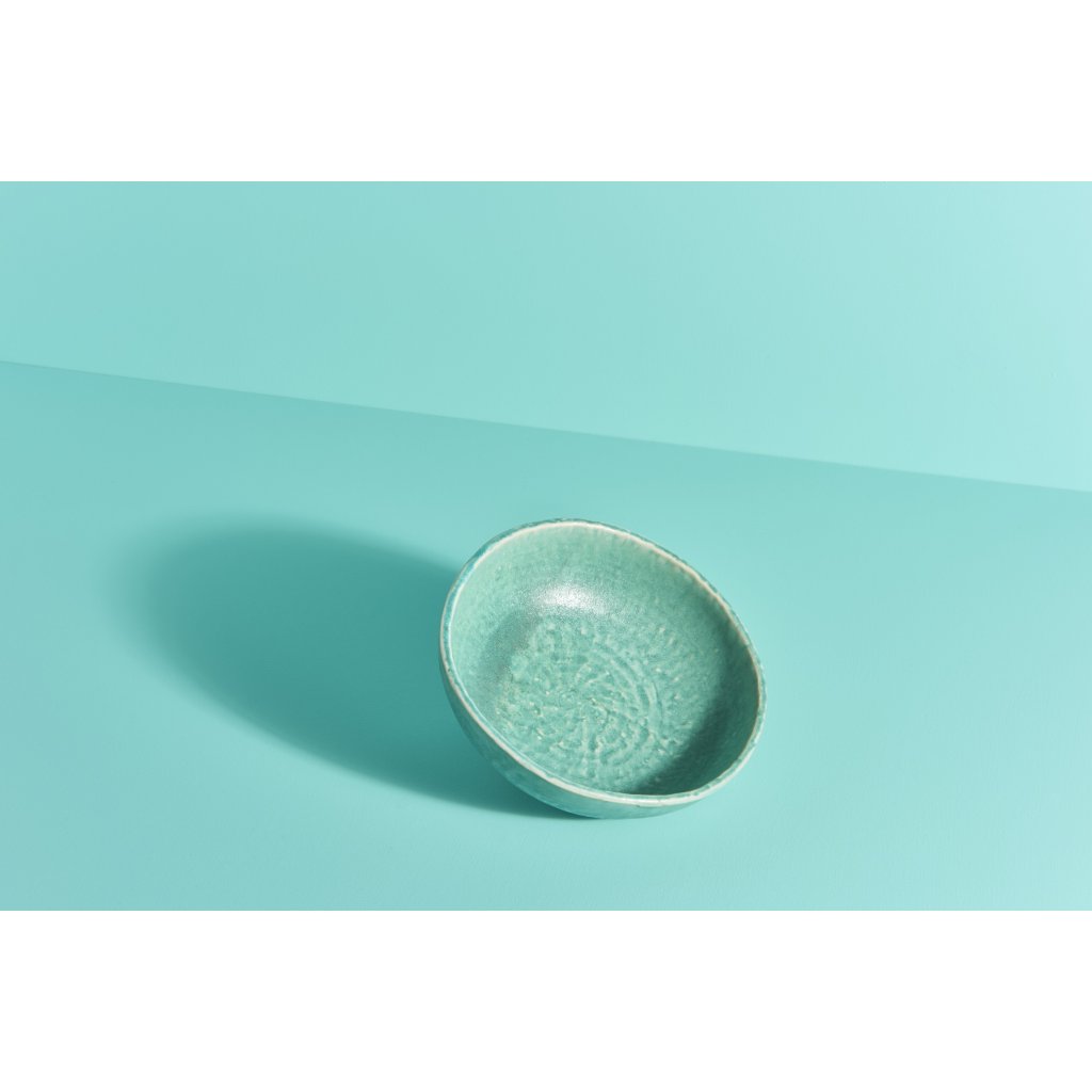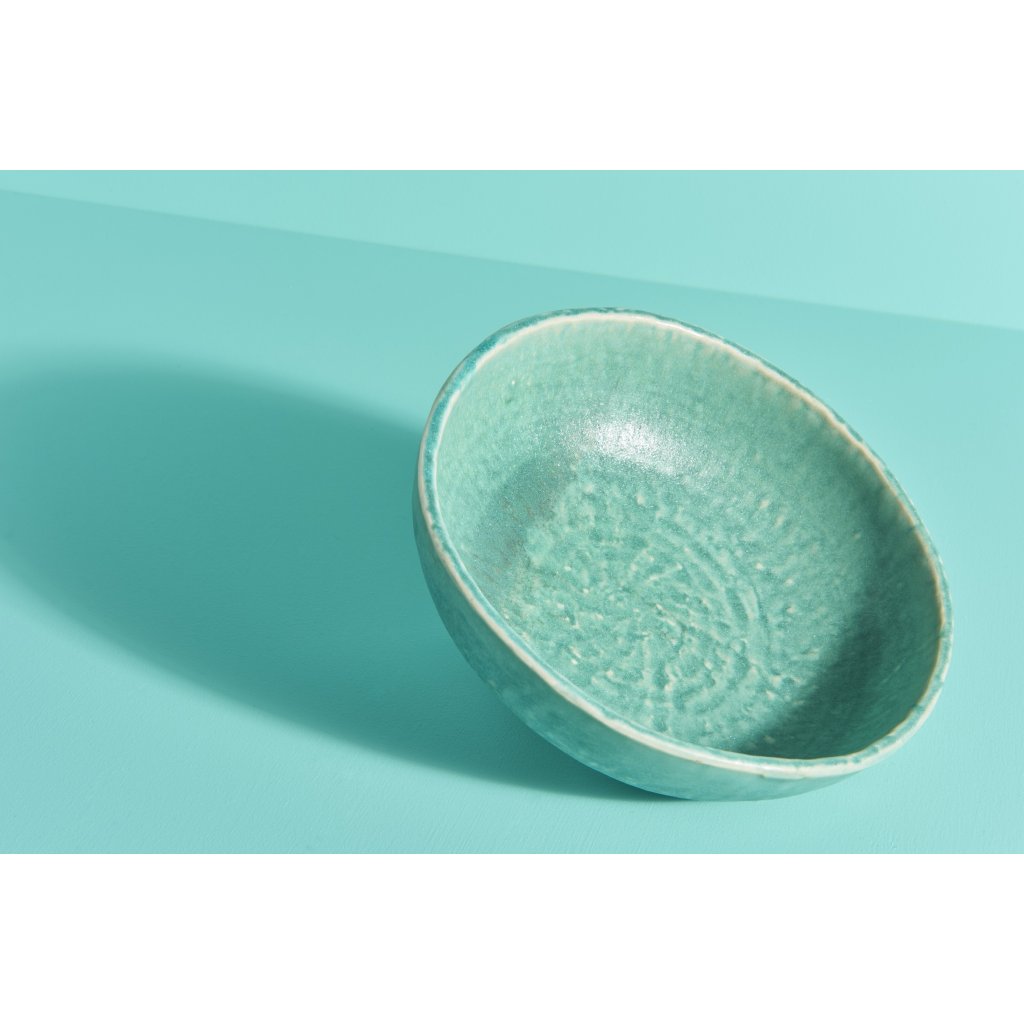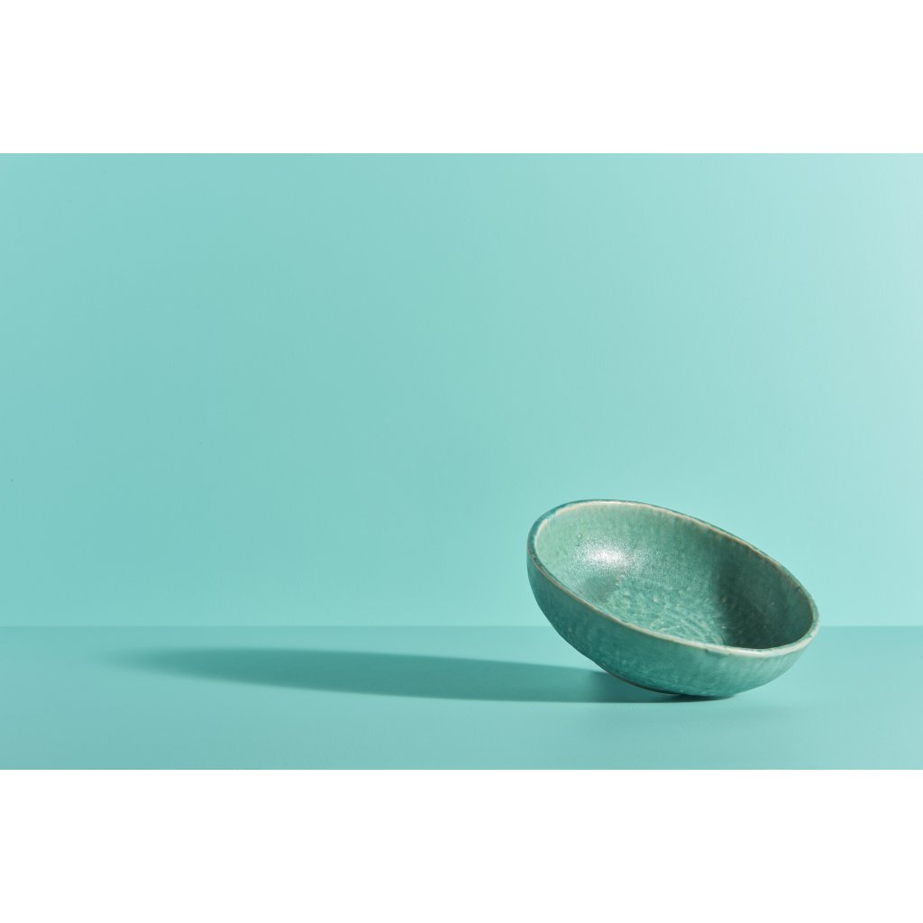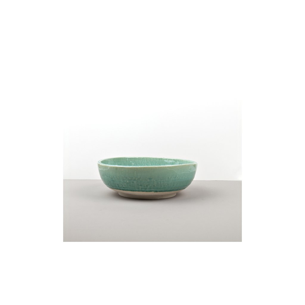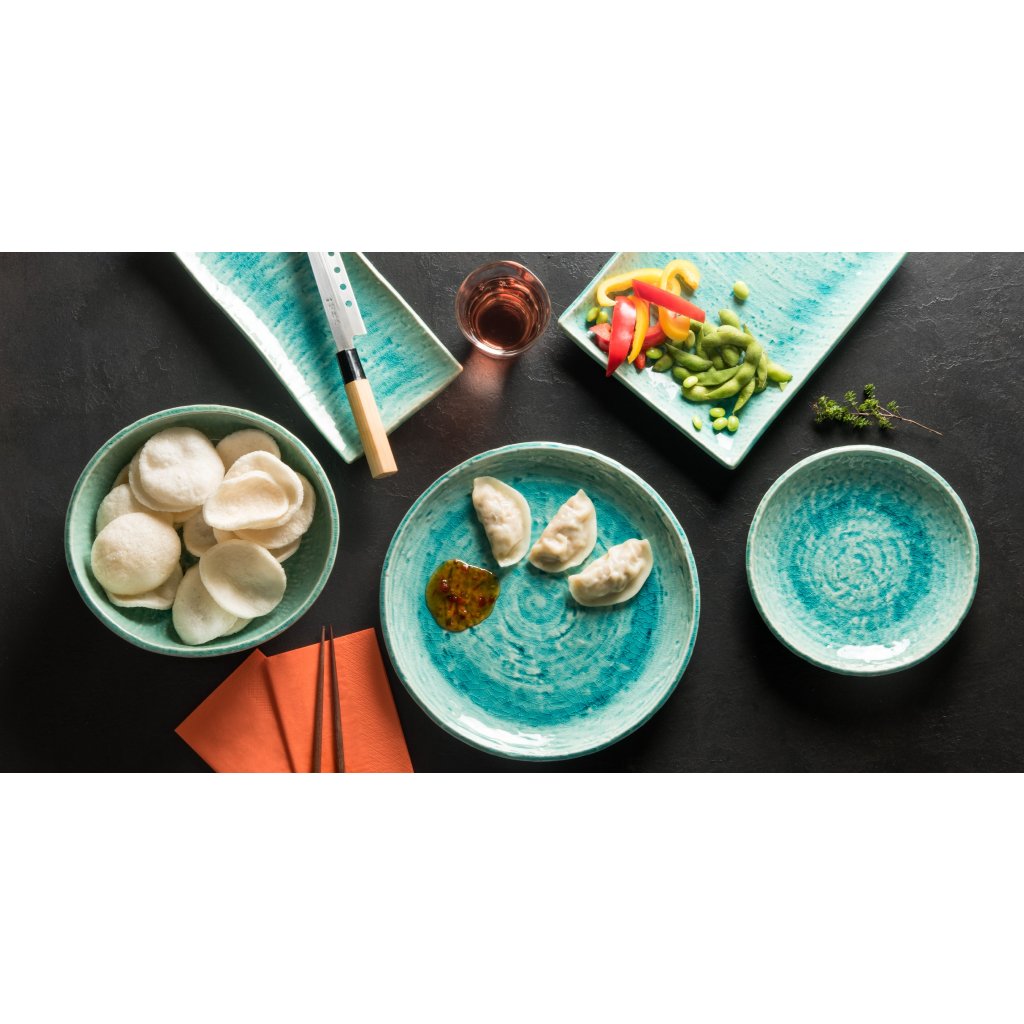 Nádobí z kolekce Turquoise vyniká především sytě tyrkysovou barvou. Kolekce má více podsérií, kdy každá je trochu jiná. Jsou v matném i lesklém provedení, některé mají i popraskanou glazuru. Některá místa jsou vyšisovaná, což evokuje pocit, že nádobí je používané již několik let. Tato servírovací mísa s tyrkysovým lesklým povrchem připomíná vodní vír nebo sluneční odlesky na hladině vody.