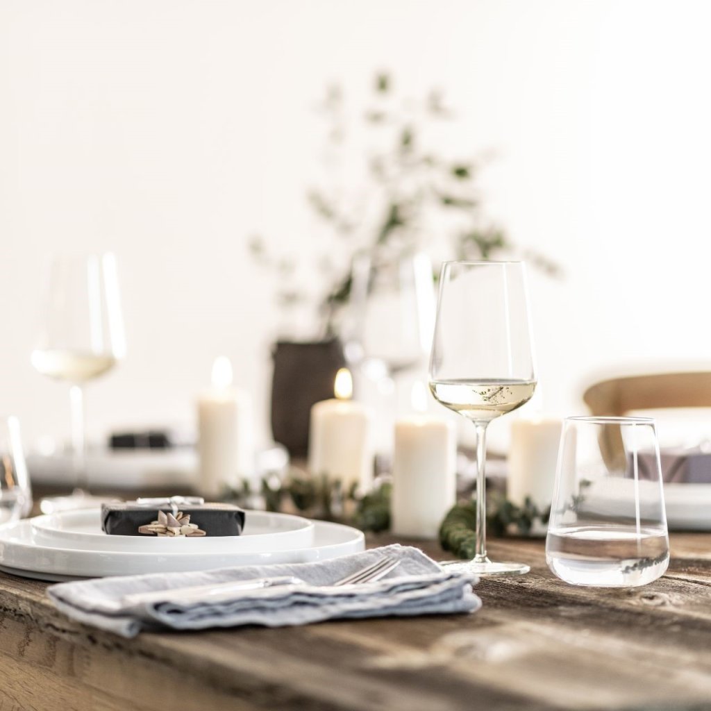 - svým jednoduchým tvarem a elegantní výškou skvěle doplňuje jak formální tabuli, tak běžné každodenní stolování