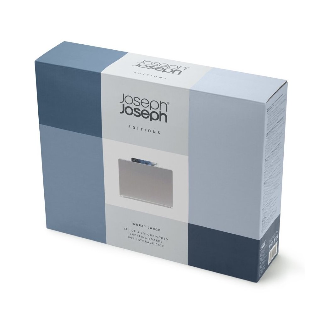 Silnou stránkou plastových krájecích prkének je rozhodně jejich snadná údržba, hygieničnost a především to, že jsou citlivé k našim nožům. Cílem designérů značky Joseph Joseph tentokrát bylo poskytnout prkénka k ruce na pracovní desku, vyrobit unikátní prkénka pro plnění účelu na 100 %, a také vyřešit jejich elegantní uložení. Stojan s prkénky Index je sadou pro nejčastější práce v kuchyni.