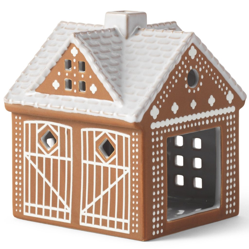 Svícen na čajovou svíčku GINGERBREAD CHRISTMAS STABLE 11,5 cm, hnědá, kamenina, Kähler