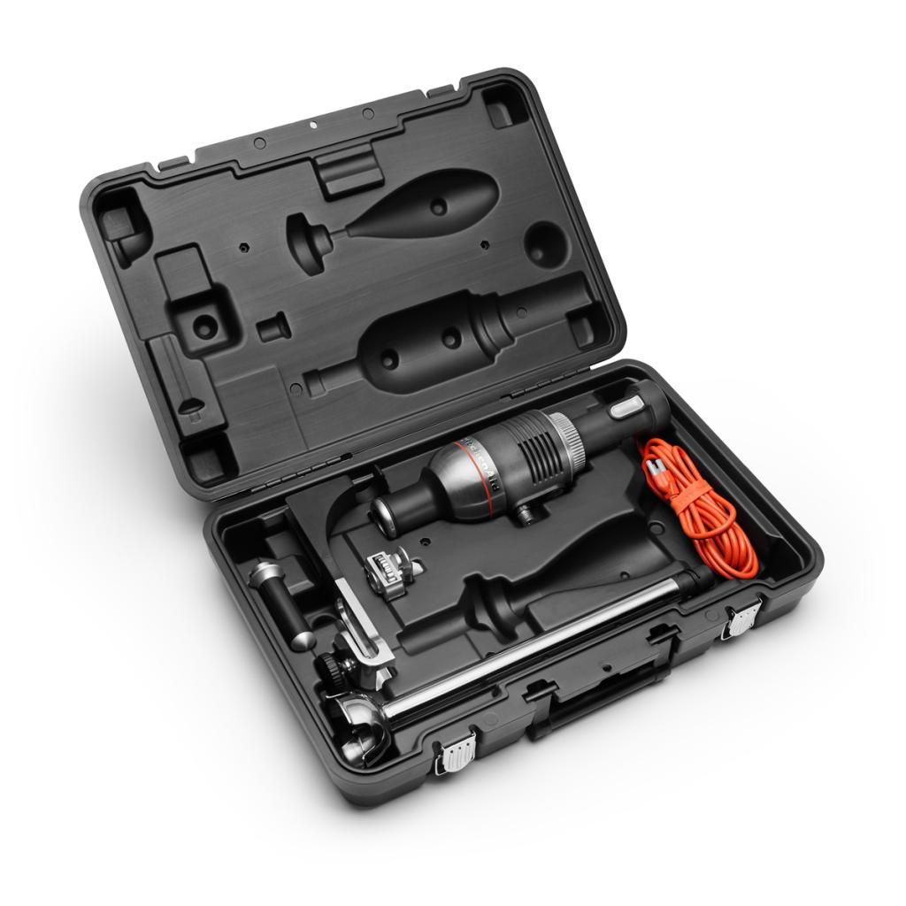Nerezové nástavce si poradí s většinou surovin a čepel zvládne mixování, drcení, sekání i výrobu pyré. Pro větší bezpečnost je šňůra vyvedena v jasně oranžové barvě a celý přístroj lze i s příslušenstvím uložit do praktického kufříku