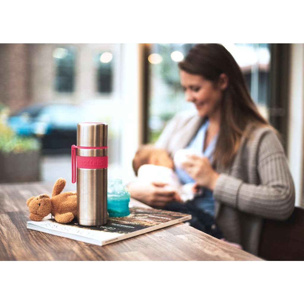 Vakuová termolahev značky Boddels je vyrobena z dvouplášťové nerezové oceli. Disponuje integrovaným hrnkem. Nápoj udrží teplý po dobu 12 hodin a chladný po dobu 24 hodin. Možnost pití a nalévání z jakékoliv strany díky 360° systému. Kolem termosky je silikonový, protiskluzový, barevný prsten.