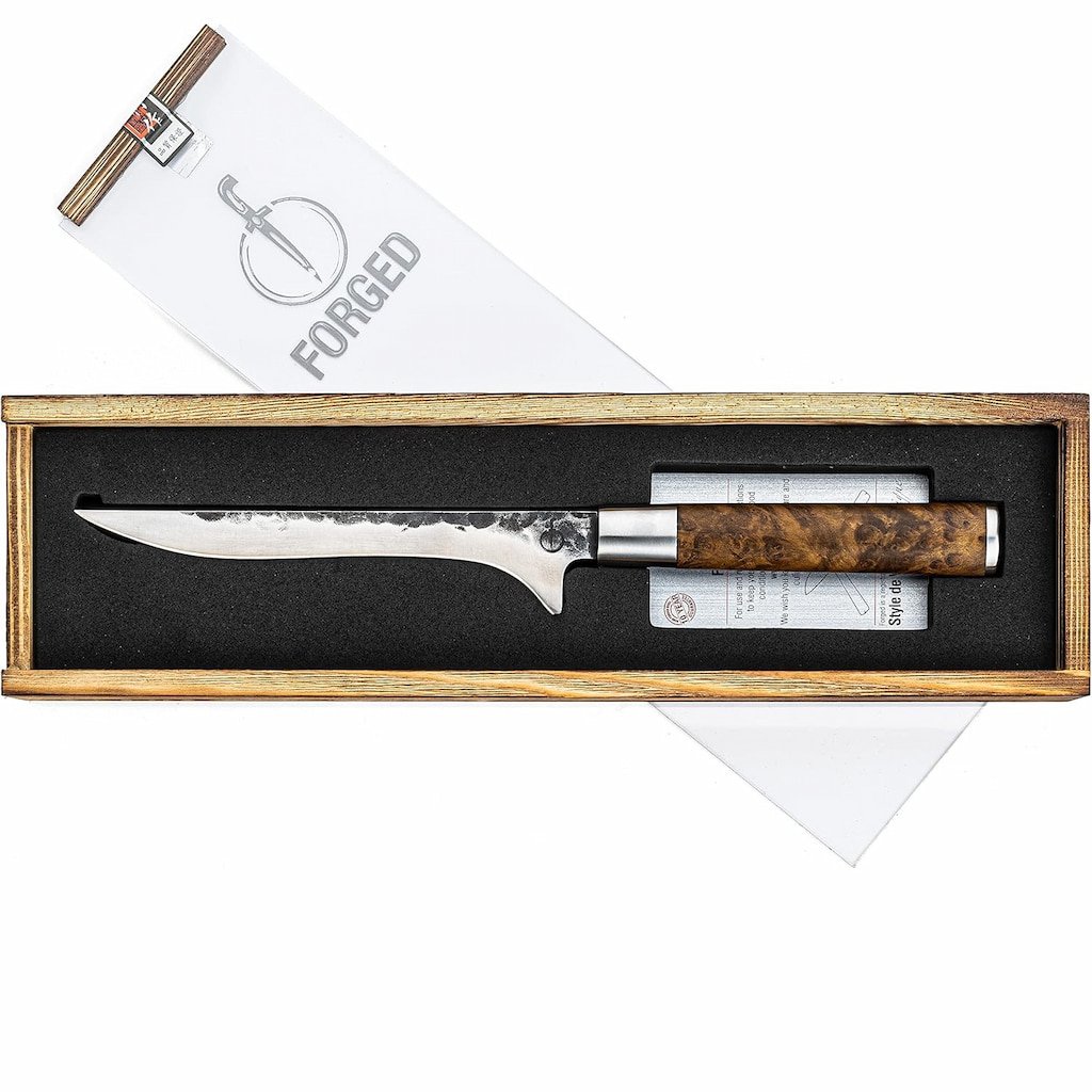 - vykosťovací nůž Forged VG10 s čepelí o délce 16 cm je určený k přesnému oddělování masa od kostí i k odstraňování šlach nebo kůže
