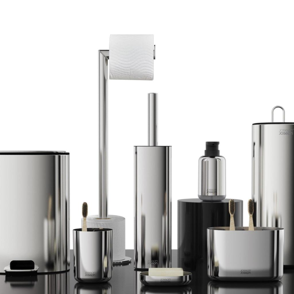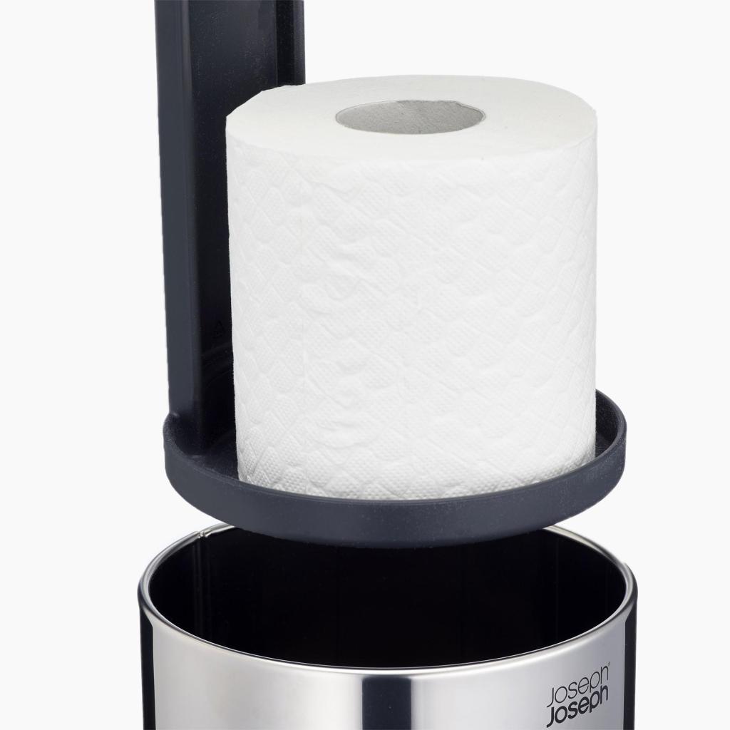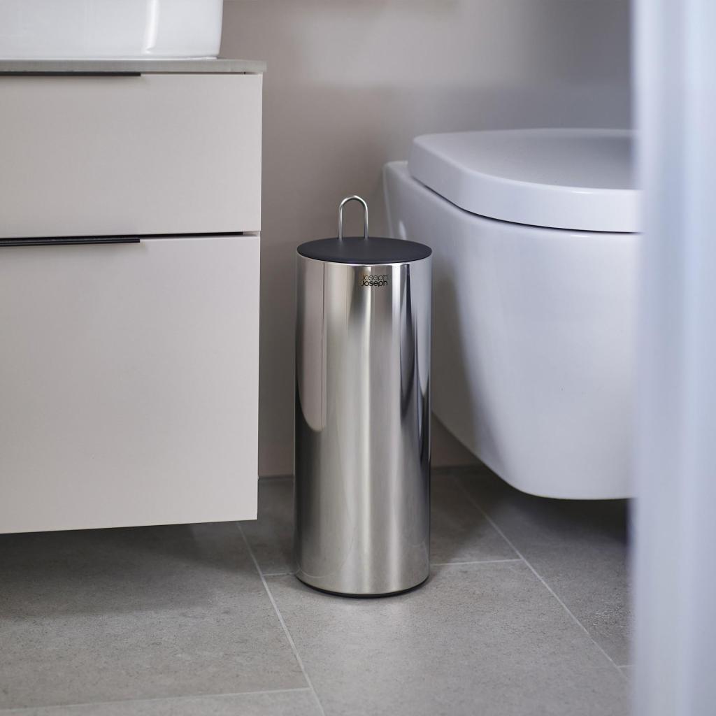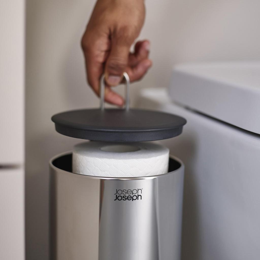 - Zásobník na toaletní papír Joseph Joseph EASYSTORE LUXE poskytuje elegantní a hygienické řešení pro uložení rolí v koupelně a pomáhá udržet prostor přehledný a vizuálně čistý.